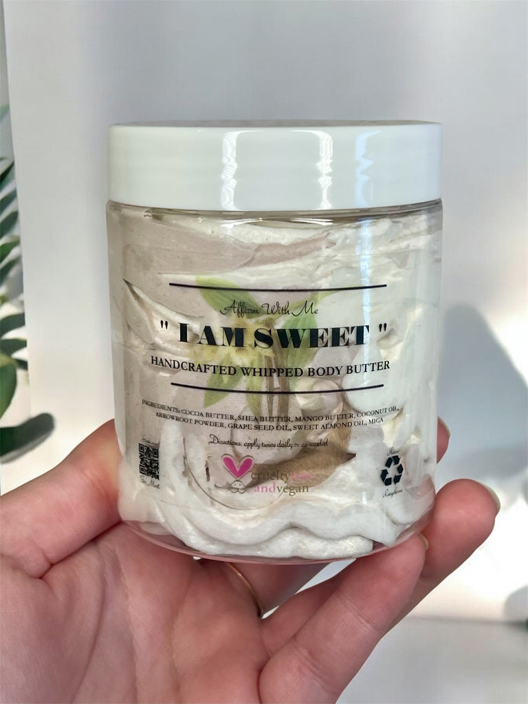 Treat your skin to the ultimate in natural luxury.Experience the difference of deeply nourished, glowing skin!Transform your skincare routine with our All-Natural Whipped Body Butter, handcrafted with love and packed with powerful, organic ingredients that deeply moisturize and rejuvenate your skin. Our luxurious triple butter blend is designed to not only pamper your skin but also address common concerns like stretch marks, discoloration, and cracked skin.
